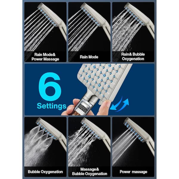 Square Shower Head with Filters, Handheld High Pressure 6 Spray Mode, Water Softener Filters Beads in Brushed Nickel