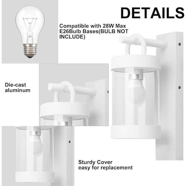 1-Piece 13 in. White Dusk to Dawn Outdoor Hardwired Lantern Modern Sconce with No Bulbs Included