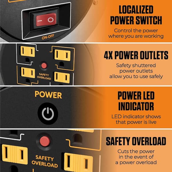 1 ft. 12/3 15 Amp Retractable Extension Cord Reel with 4 Grounded Outlet and Power Switch