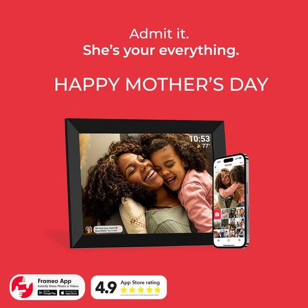 10.1 in. Digital Photo Frame with 32GB Storage, IPS Touch Screen, Wall Mountable, Auto-Rotate, Motion Sensor in Black