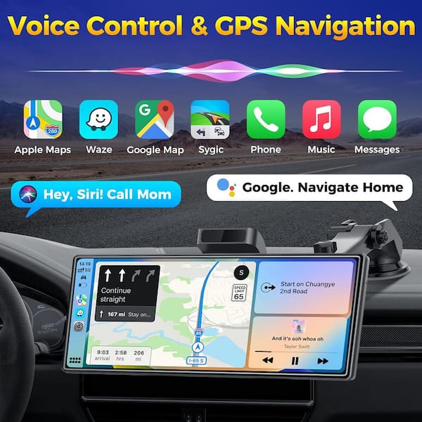 10.26 in. Wireless Apple/Android CarPlay for Car Stereo with 4K Dash/Back Cam, GPS Navigation and HD Touchscreen