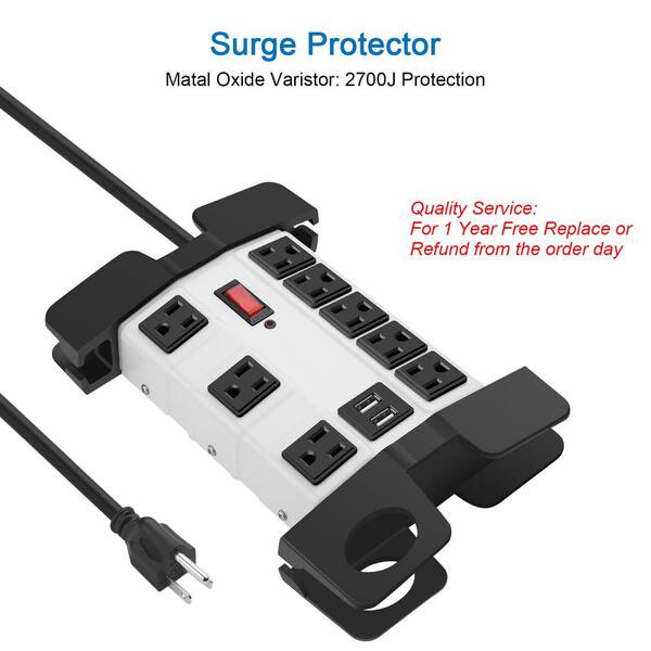 10 ft. Extension Cord 8-Outlet Heavy Duty Industrial Metal Power Strip Surge Protector in Gray with USB