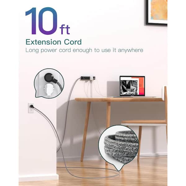 10 ft. Flat Plug Power Strip Surge Protector Extension Cord with 12-Widely Outlets 3-USB, Wall Mount Overload Protection