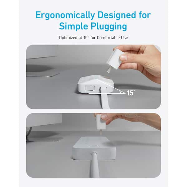 10-in-1, 5 ft. 20-Watt Ultra Thin Flat Plug Power Strip 6-Outlets Surge Protector in White with 4 USB and Extension Cord