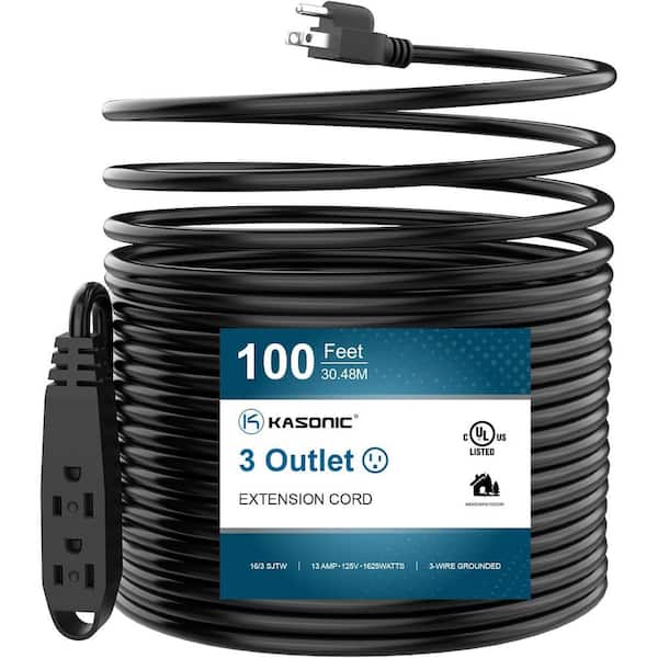 100 ft. 16/3 Heavy Duty Indoor/Outdoor Extension Cord SJTW UL Listed, Black (1-Pack)