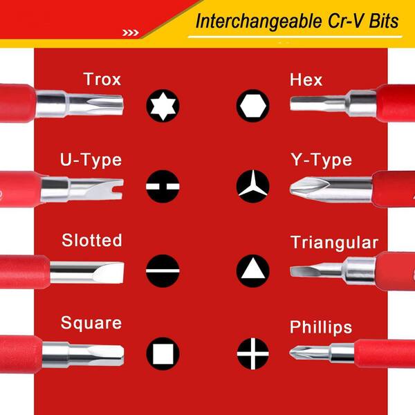 1000-Volt Insulated 5.5 in. Shank 14 Bit Red Insulated Screwdriver Set Professional Electrician Tool Kit (29-Piece)