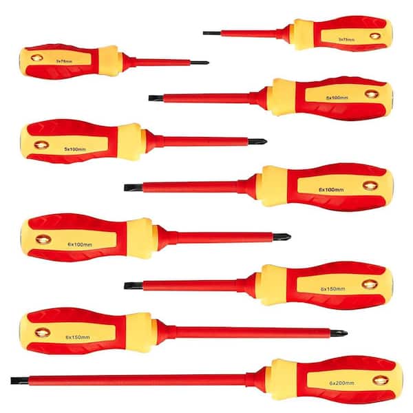1000-Volt Insulated Screwdriver Set 8.69 in. Shank 9 Bit Red Professional Electrician Tool 9-Piece Magnetic Tips