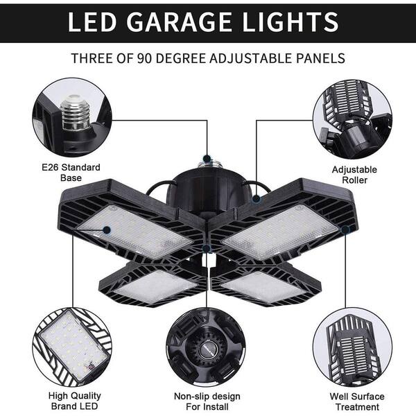100W LED Garage Lights 10000 Lumen Deformable Adjustable 6000K Daylight E26 Easy Install Super Bright 8 Pack