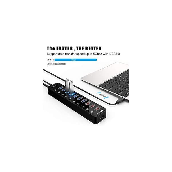 11-Port USB 3.0 Hub with 7-Data Ports and 4-Smart Charging Ports, Individual Switches, 12V/4A Adapter