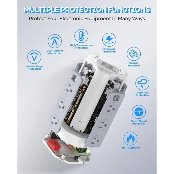 12-Outlet Power Strip Surge Protector with 10 ft.Extension Cord, 4 USB Port in White