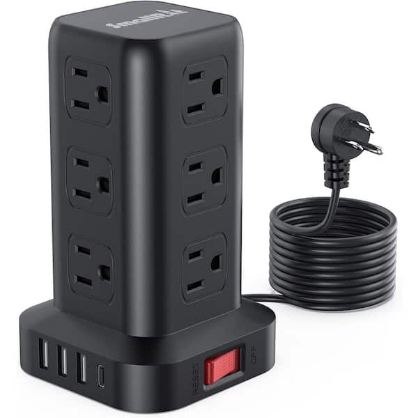 12-Outlet Power Strip Surge Protector with 10 ft. Extension Cord and USB Ports in Black