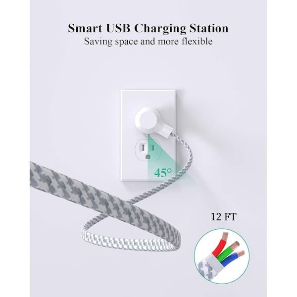 12 ft. Extension Cord 6-Outlet Power Strip Surge Protector in White with 2-USB Ports and Flat Plug (2-Pack)