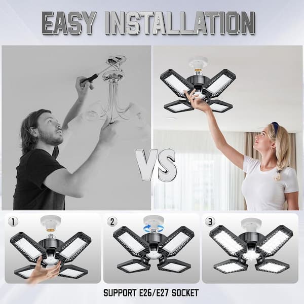 12000-Lumens LED Garage Lights 120W 2-Pack 4 plus 1 Deformable Panels 6500K Screw in Workshop Basement Lighting E26/E27