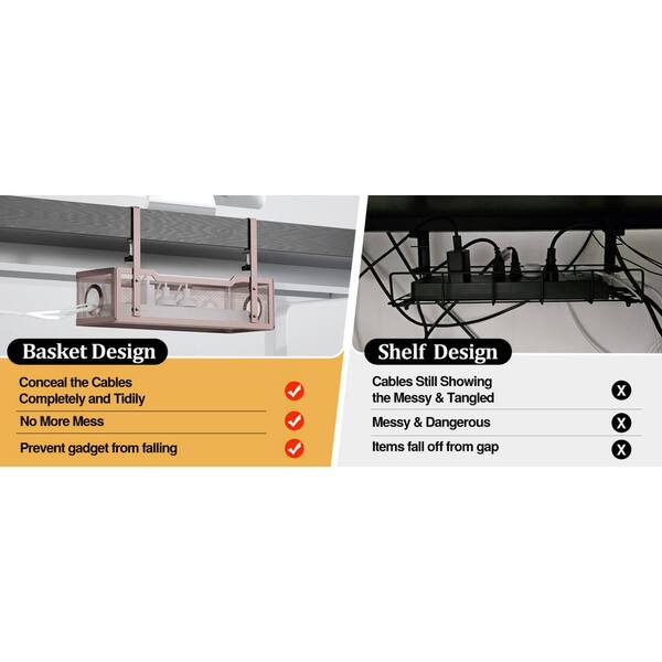 13.4 in. Under Desk Cable Management Box Copper Powder-Coated Metal No Drill with Clamp & Anti-Scratch Mats Wire Tray