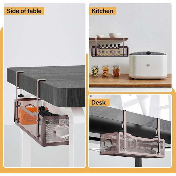 13.4 in. x 4.6 in. x 3.1 in. Under Desk Cable Management Tray with Clamp for Desk and Velcro in Copper