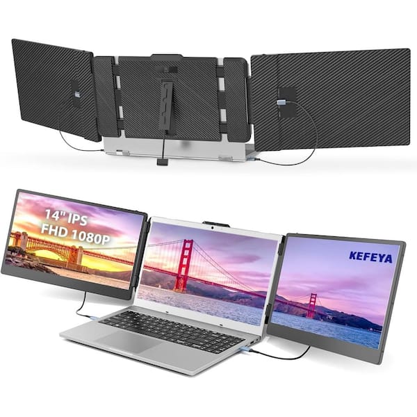 14 in. Portable Monitor Triple Screen Extender 1080P FHD in Black