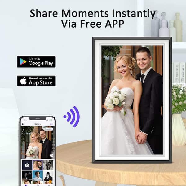 15.6 in. 32GB WiFi Digital Photo Frame with IPS Touch Screen, Auto-Rotate, Wall-Mounted in Black