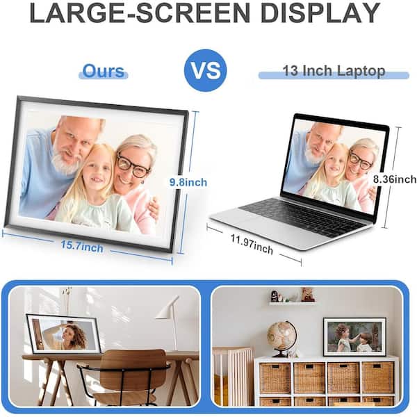 15.6 in. WiFi Digital Photo Frame with 32GB Storage, 1920x1080 IPS FHD Touch Screen and Auto-Rotate in Black