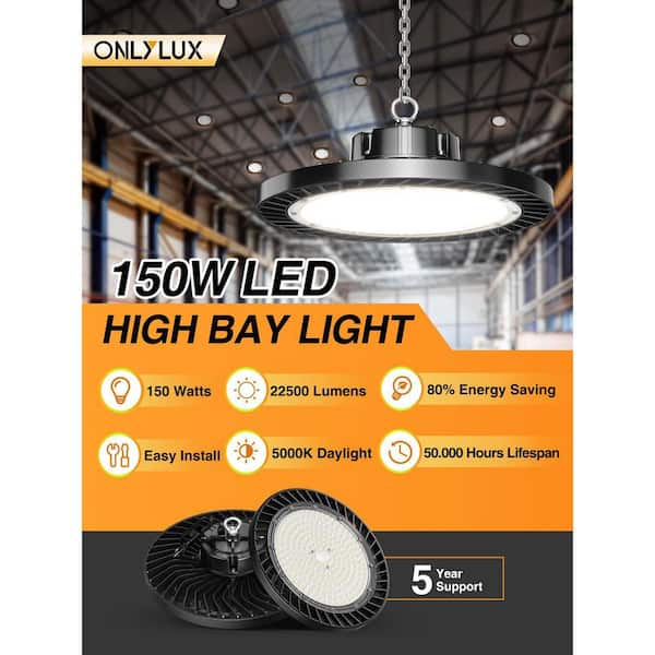 150W 22500-Lumens UFO LED High Bay Light 5000K Daylight 12-Pack for Workshop Warehouse Barn Plug and Play