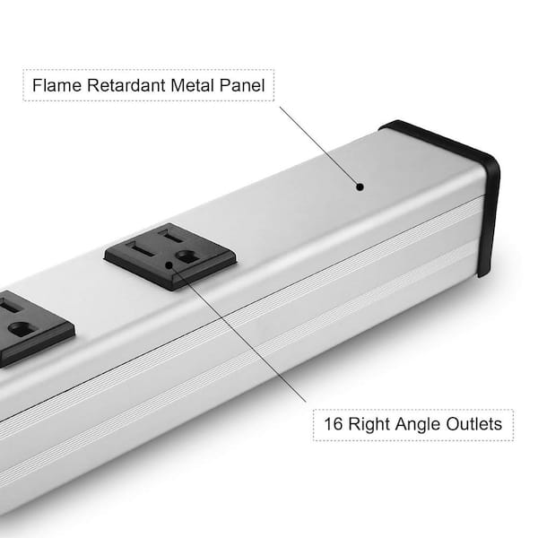 16-Outlet Long Heavy-Duty Power Strip Surge Protector in Silver with 6 ft. Extension Cord