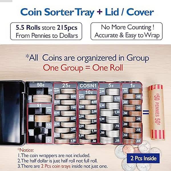 2 Pack Mini Coin Sorting Tray with Lid Accurate Easy Wrap Change Counter Coin Organizer Holder for Coins