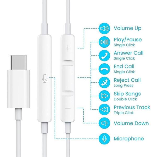 2 Packs White USB C Wired in-Ear Headphones