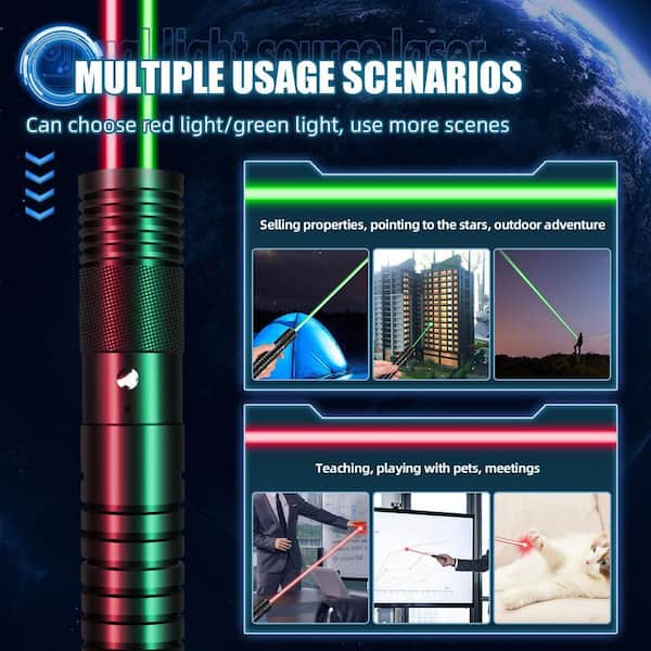 2 in 1 High Power Laser Pointer with Green and Red Light, Adjustable Focus Tactical Flashlight for Presentations Screen