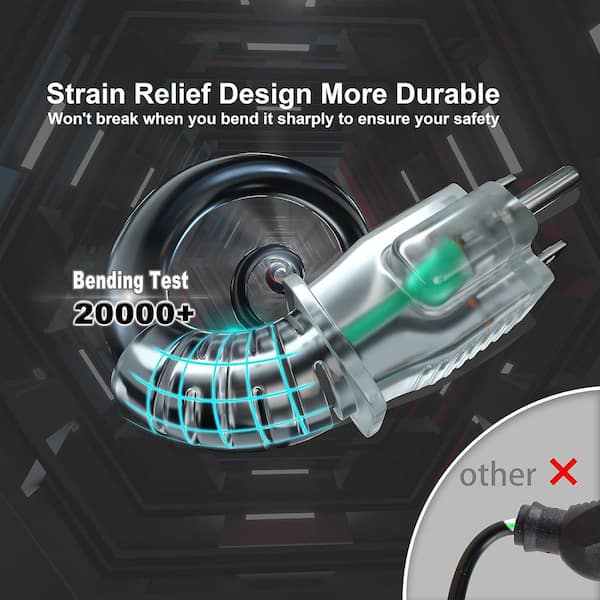 200 ft. 16/3 Gauge Outdoor Extension Cord with Lighted End Cold-Resistant Black Waterproof Flexible Tri-Tap