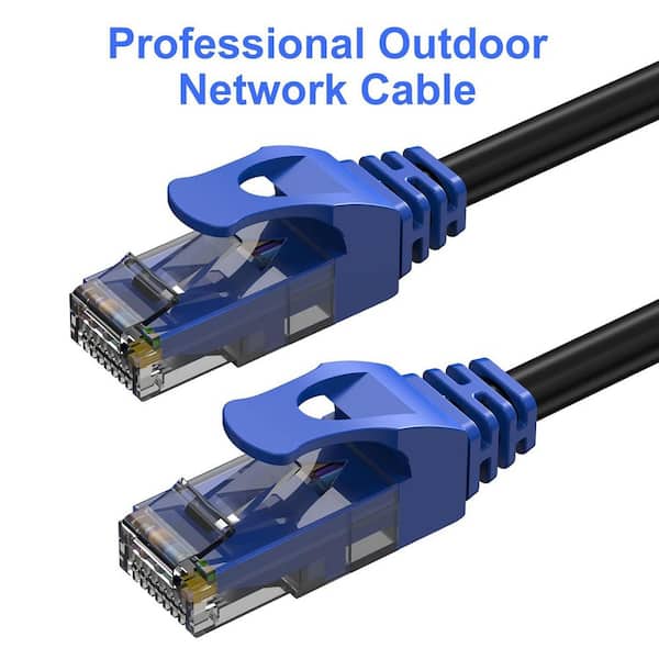 200 ft. 24AWG/8 Heavy Duty Direct Burial Outdoor Ethernet Cable Waterproof UV Resistant Black with 25 Cable Ties