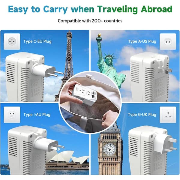 2000-Watt Travel Adapter Voltage Converter Plug 220-Volt to 110-Volt Converter with 2-Outlet and 2-USB Ports in White