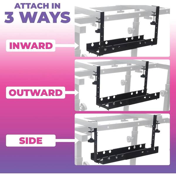 22.5 in. Stands Extendable Under Desk Cable Management Tray with Clamp Aluminum in Black