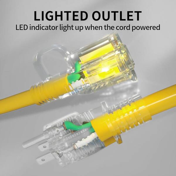 25 ft. 12/3 Outdoor Extension Cord with Lighted Indicator SJTW ETL Listed, Yellow (1-Pack)