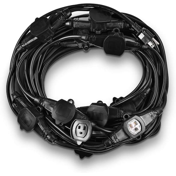 25 ft. 16/3 Heavy Duty Outdoor Extension Cord with 6 Multi-Plug Outlets, LED Indicators and Weather-Resistant, Black