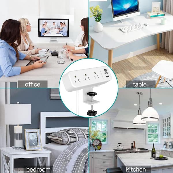 3-Outlet Desk Clamp Power Strip with USB Port and 6.5 ft. Plug Extension Cord in White