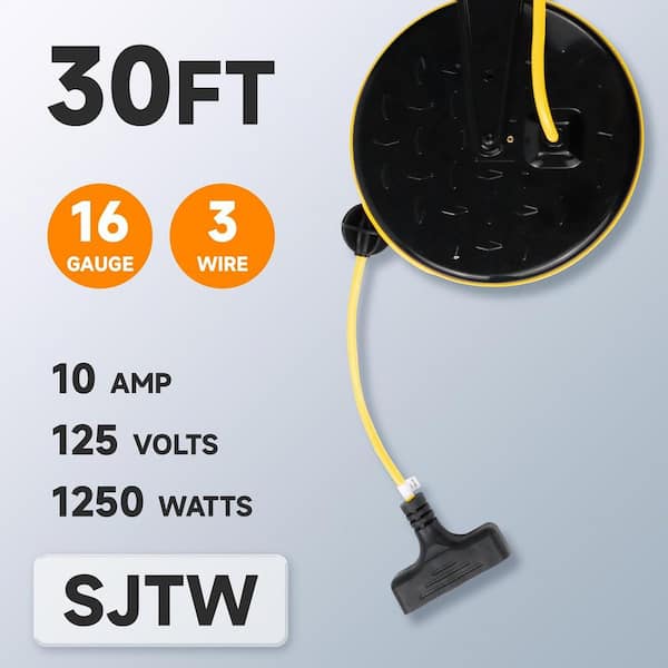 30 ft. 16/3 10 Amp Retractable Extension Cord Reel with 3 Grounded Outlet SJTW UL Listed in Yellow