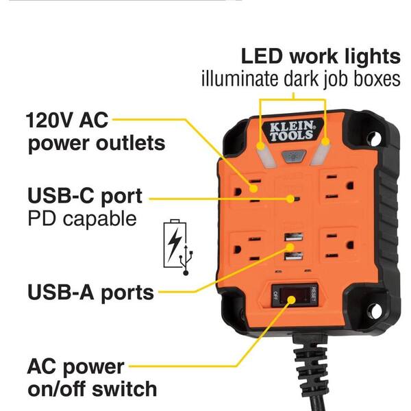 4-Outlet Power Supply Box Magnetic Power Strip Surge Protector with 3 USB Ports, 5 ft. Cord & Built-in LED Light, Orange