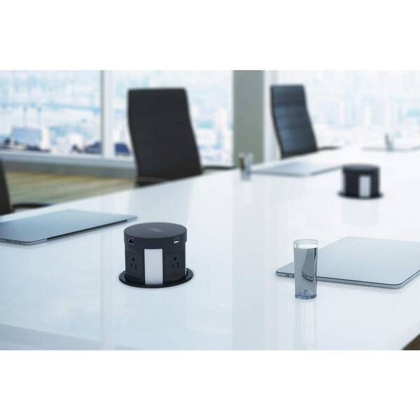 4-Outlet Recessed Automatic Pop Up Power Strip Power Surge Protector in Black with Wireless Charger USB Charging Station