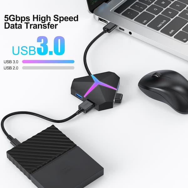 4-Port USB 3.0-Hub Multiport Adapter Expander High Speed 5Gbps Data Transfer Extra Ports for Laptop Mac PC PS5