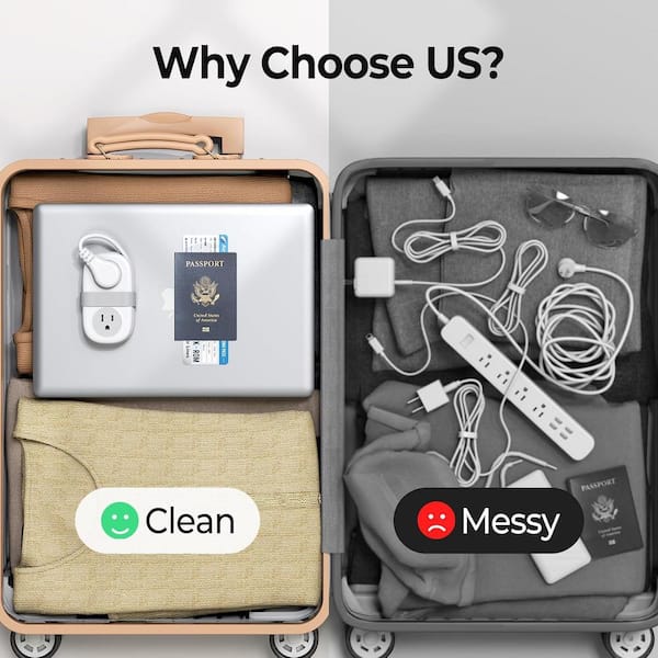 4 ft. White Travel Power Strip Wrapped Compact Short Extension Cord with 4 Outlets 3 USB Ports Extension Cord for Travel