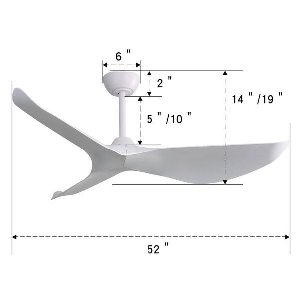 52 in. 6 Speed Indoor Ceiling Fan in White with Remote Control, 3 ABS Blade Reversible DC Motor For Living Room/Bedroom