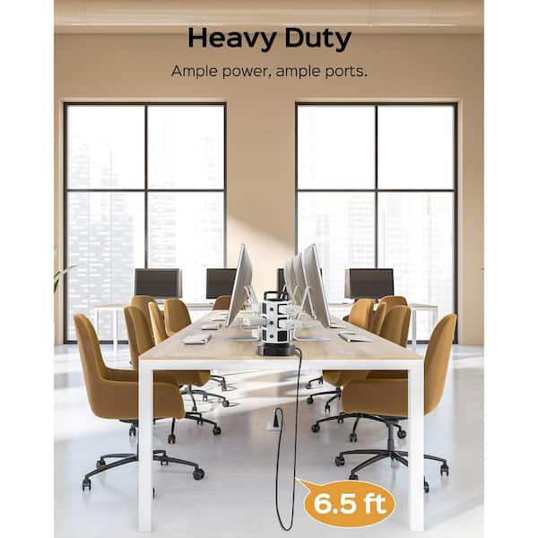 6.5 ft. Plug Extension Cord Power Strip Tower 12-Outlets Surge Protector in White with 4 USB and 2 Type C Ports