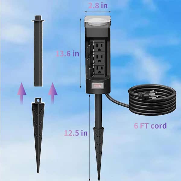 6-Outlet Outdoor Stake Timer with 6 ft. Extension Cord Mechanical Power Timer in Black