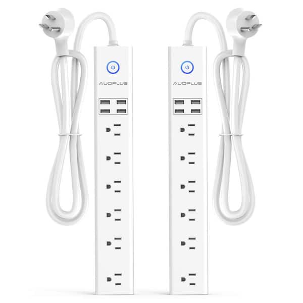 6 ft. Extension Cord 6-Outlet Power Strip Surge Protector in White with 4 USB ports and Flat Plug - 2 Pack