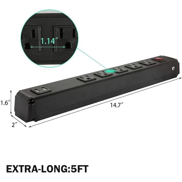 6 ft. Heavy-Duty Braided Extension Cords 5-Outlets Surge Protector Power Strip with 2-USB Ports - (2-Pack)
