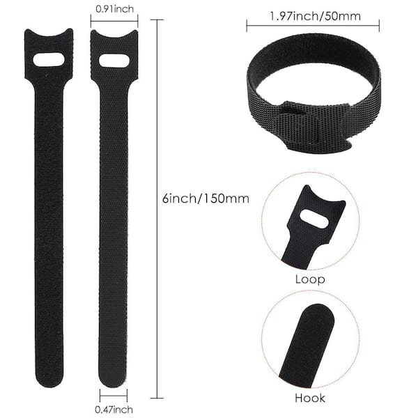 6 in. Reusable Cable Ties Wire Ties Cord Organizer Adjustable Management Black 120 Pack