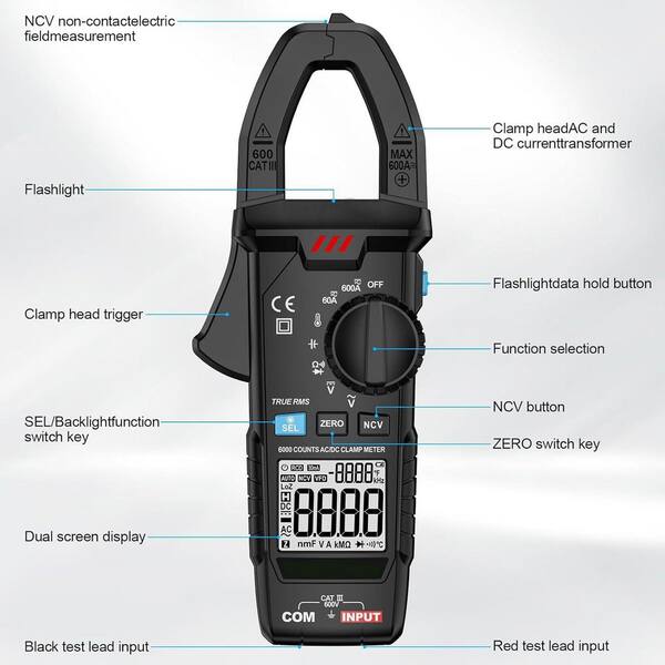 600-Volt 600-Amp AC/DC Digital Clamp Meter with True-RMS, NCV, and LED Flashlight
