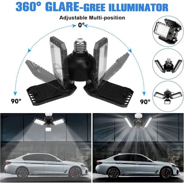 80-Volt 8000 Lumen LED Garage Ceiling Light with 3 Deformable Panels, 2 Pack, E26/E27 for Basement Barn Warehouse