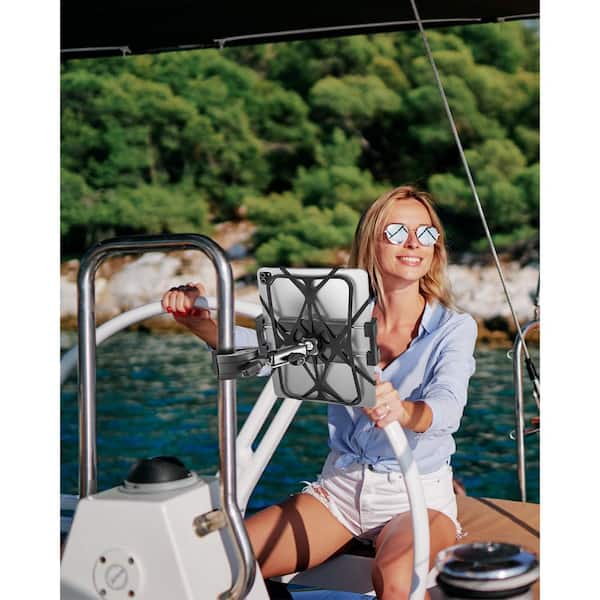 Adjustable Metal Tablet Mount for 4.7-13 Devices on Boat Helm, Wheelchair, Golf Cart, Bike, 360° Handlebar Clamp