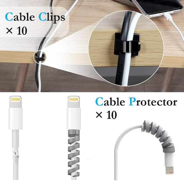 Cable Management Kit 165 Pcs with Wire Organizer Holder Clips Roll Straps Cable Protectors 100 Black Zip Ties Cord Hider