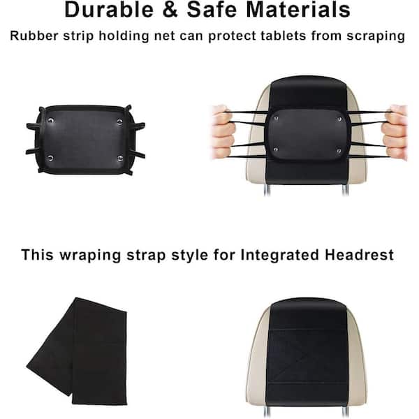 Car Headrest Mount Holder Tablet Holder for Kids Anti-Slip Strap Holding Net Angle-Adjustable Fits 7-12.9 in. Tablets